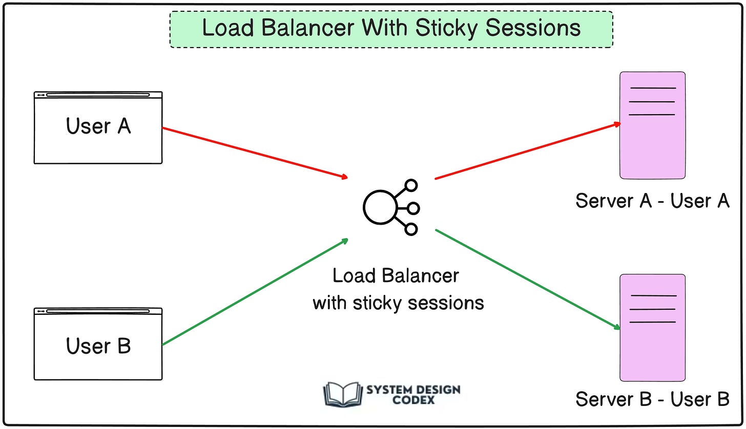Load balancers support session persistence (also called sticky sessions), ensuring that requests from the same user always go to the same server. This prevents issues like losing cart items or breaking authentication workflows.
